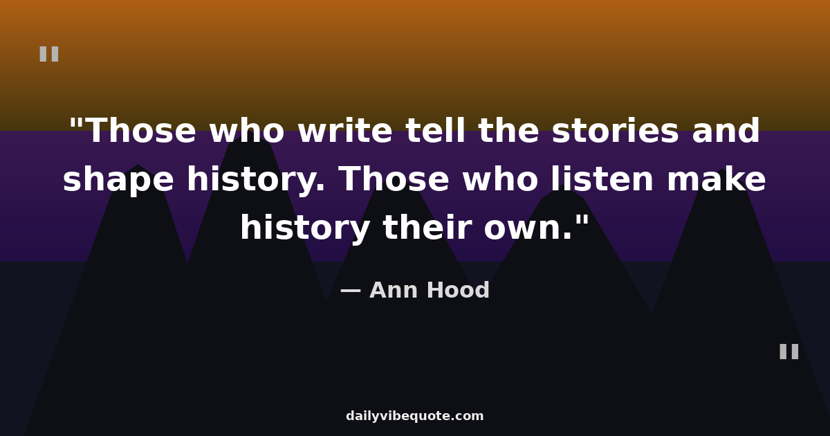 "Those who write tell the stories and shape history. Those who listen make history their own."