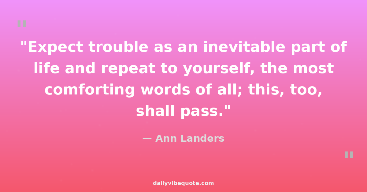 "Expect trouble as an inevitable part of life and repeat to yourself, the most comforting words of all; this, too, shall pass."