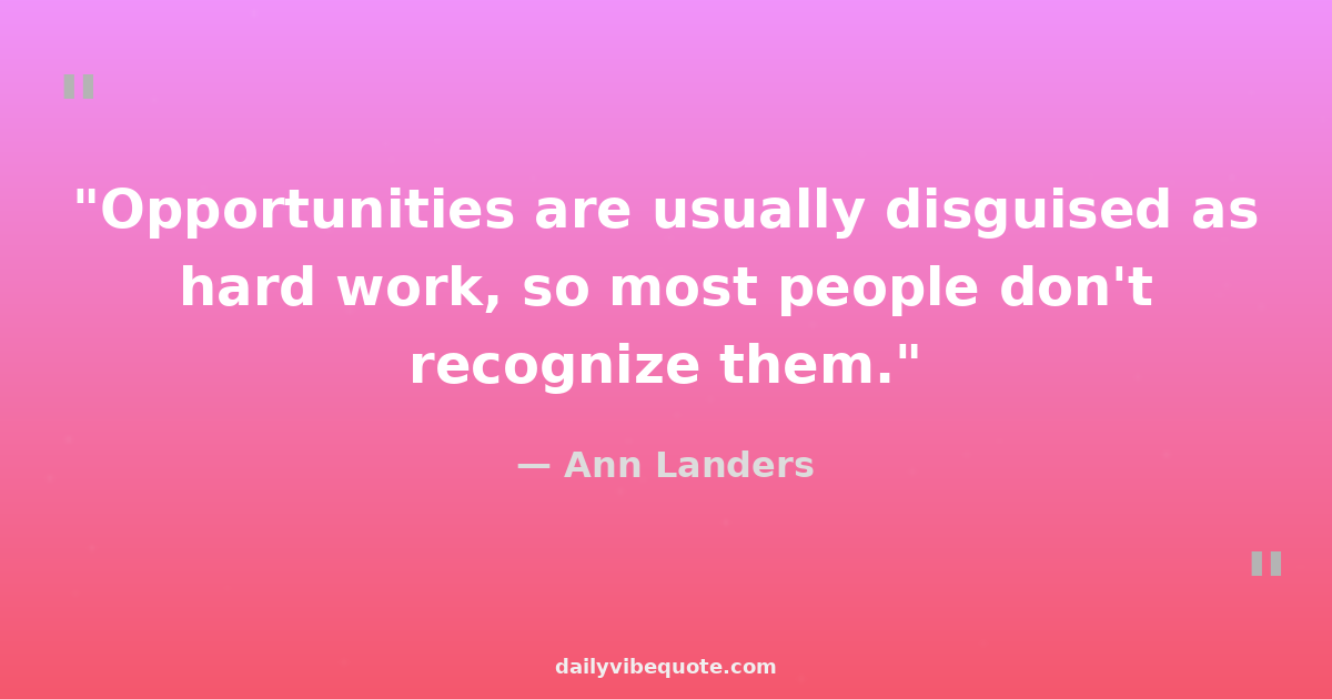 "Opportunities are usually disguised as hard work, so most people don't recognize them."