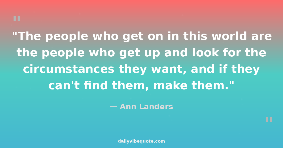 "The people who get on in this world are the people who get up and look for the circumstances they want, and if they can't find them, make them."