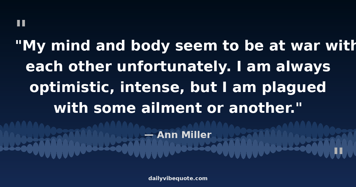 "My mind and body seem to be at war with each other unfortunately. I am always optimistic, intense, but I am plagued with some ailment or another."
