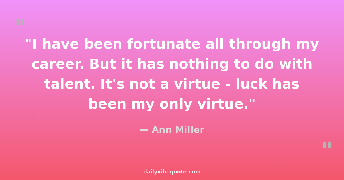 "I have been fortunate all through my career. But it has nothing to do with talent. It's not a virtue - luck has been my only virtue."