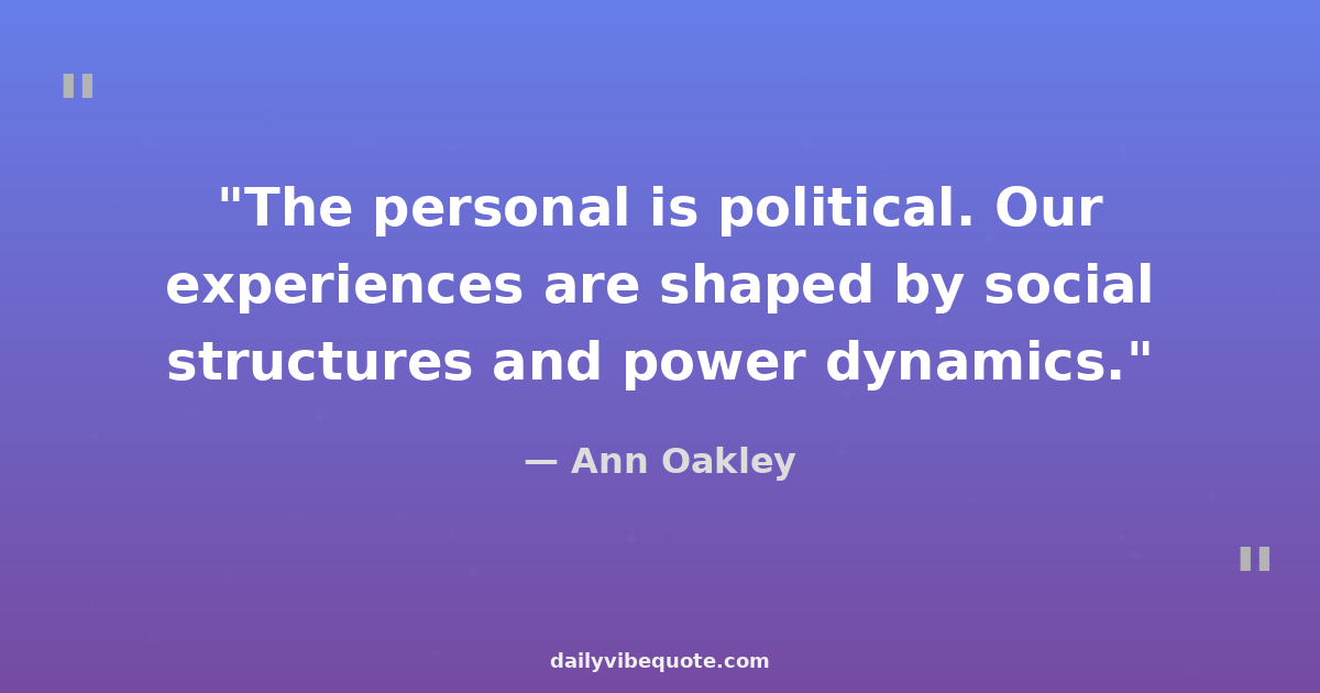"The personal is political. Our experiences are shaped by social structures and power dynamics."