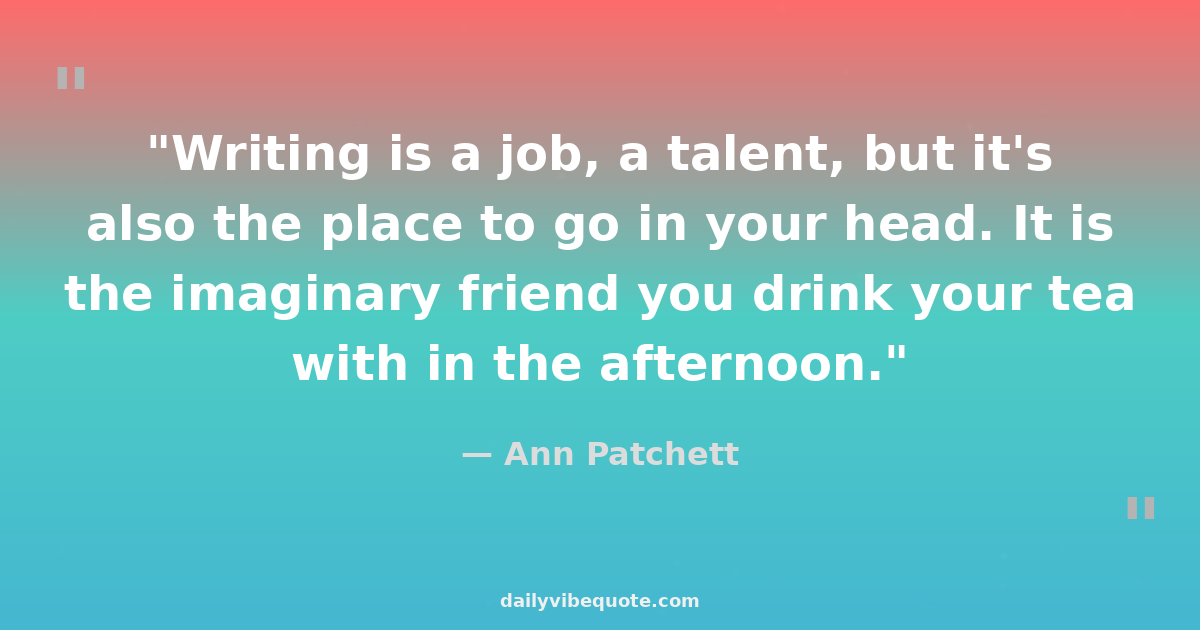 "Writing is a job, a talent, but it's also the place to go in your head. It is the imaginary friend you drink your tea with in the afternoon."