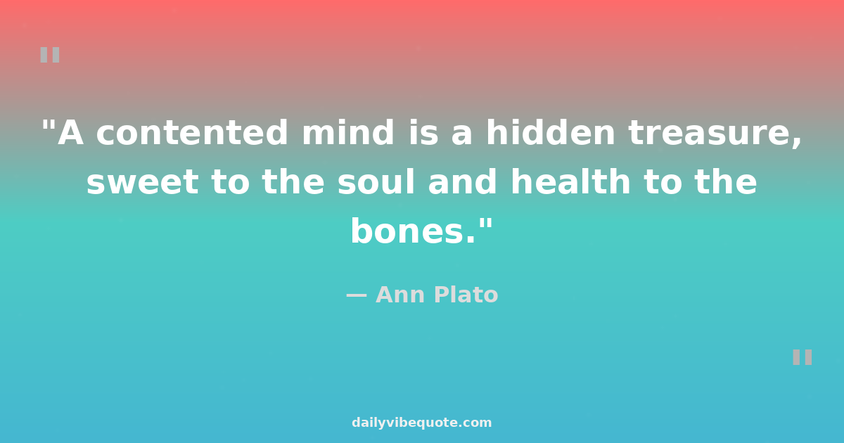 "A contented mind is a hidden treasure, sweet to the soul and health to the bones."