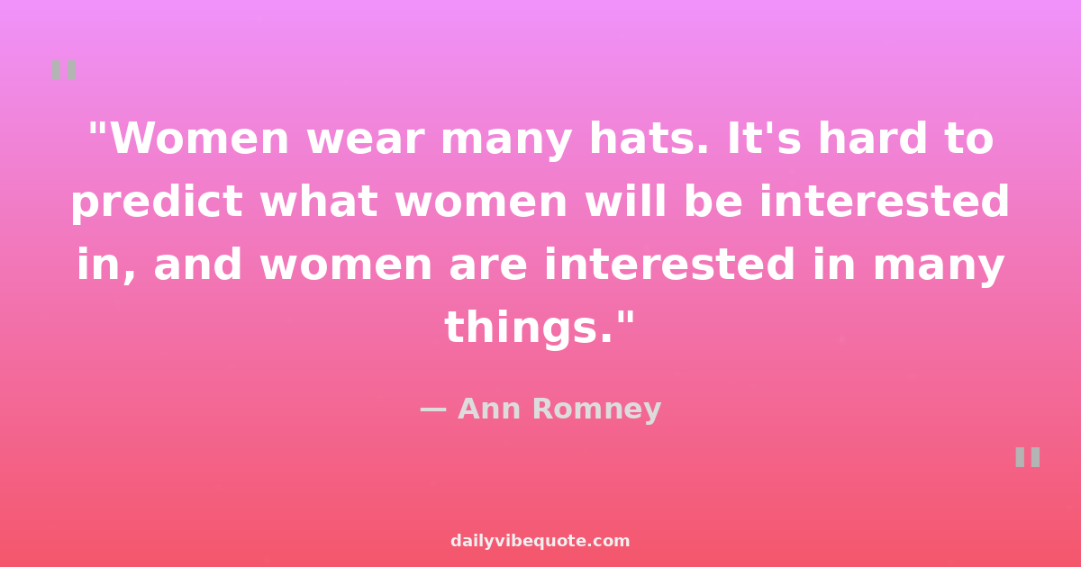 "Women wear many hats. It's hard to predict what women will be interested in, and women are interested in many things."