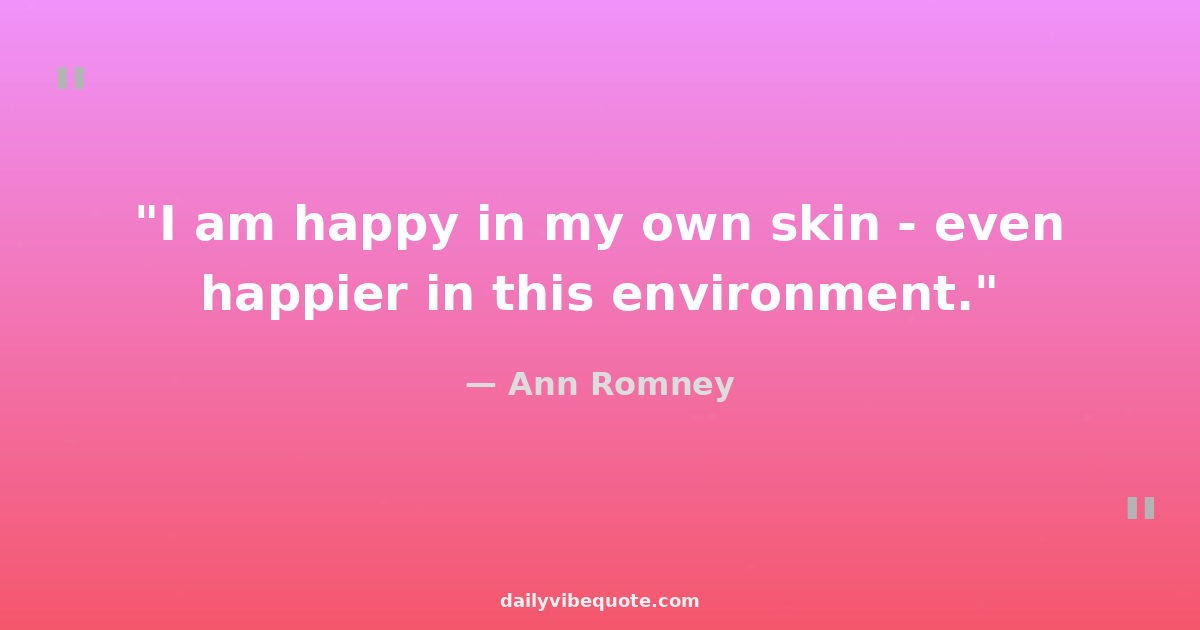 "I am happy in my own skin - even happier in this environment."