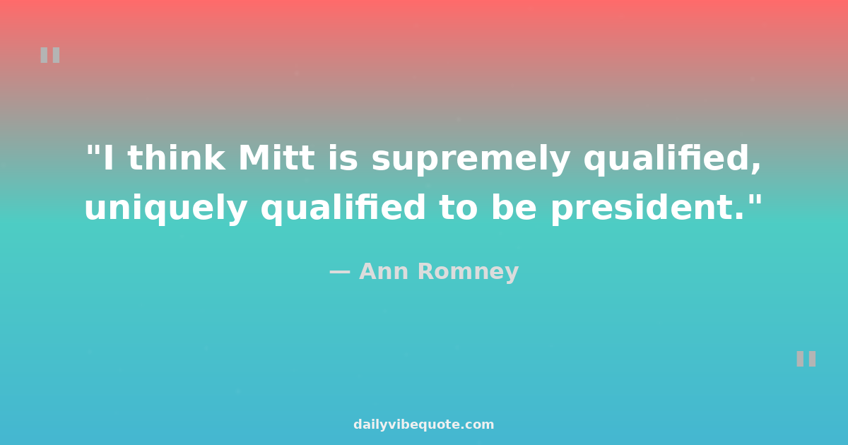 "I think Mitt is supremely qualified, uniquely qualified to be president."