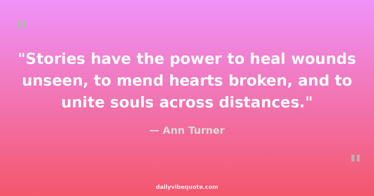 "Stories have the power to heal wounds unseen, to mend hearts broken, and to unite souls across distances."