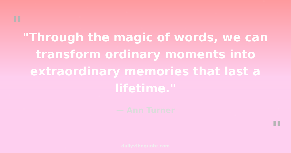 "Through the magic of words, we can transform ordinary moments into extraordinary memories that last a lifetime."