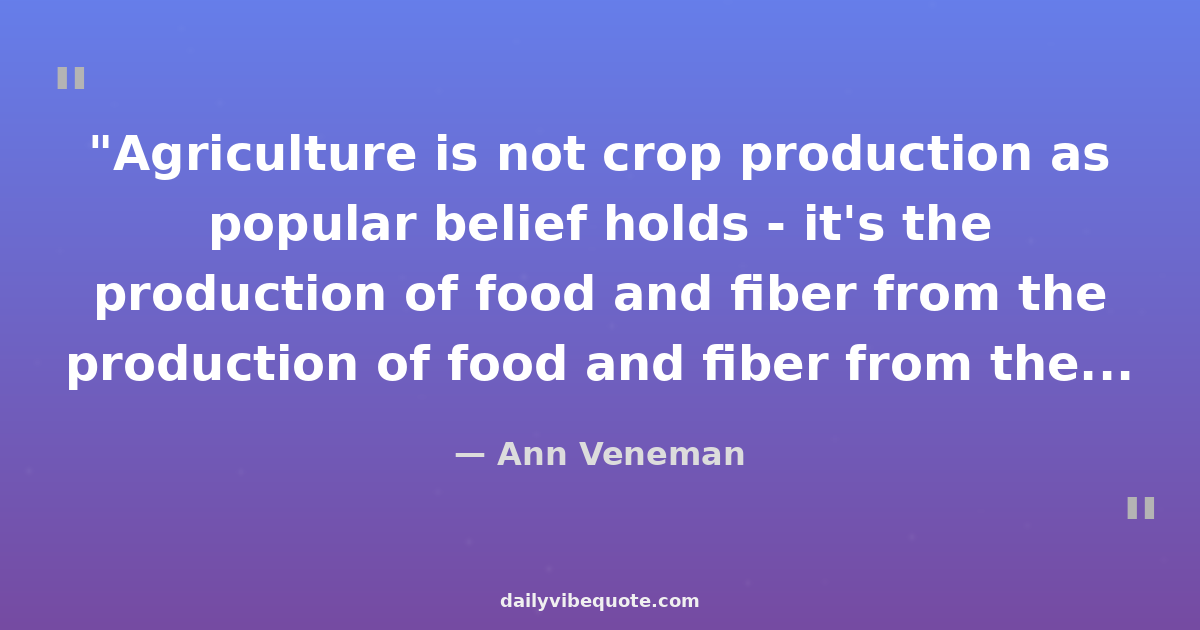 "Agriculture is not crop production as popular belief holds - it's the production of food and fiber from the world's land and waters. Without agriculture it is not possible to have a city, stock market, banks, university, church or army."