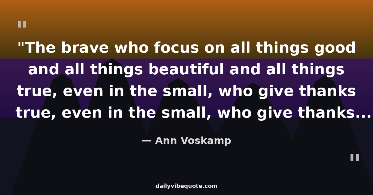 "The brave who focus on all things good and all things beautiful and all things true, even in the small, who give thanks for it and discover joy even in the here and now, they are the change agents who bring fullest Light to all the world."