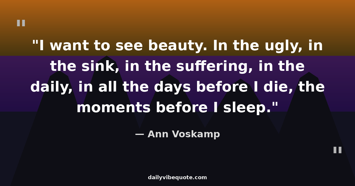 "I want to see beauty. In the ugly, in the sink, in the suffering, in the daily, in all the days before I die, the moments before I sleep."