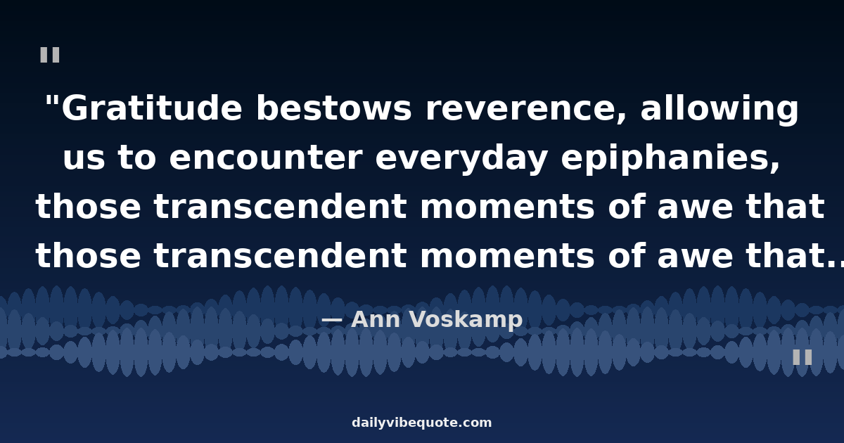 "Gratitude bestows reverence, allowing us to encounter everyday epiphanies, those transcendent moments of awe that change forever how we experience life and the world."