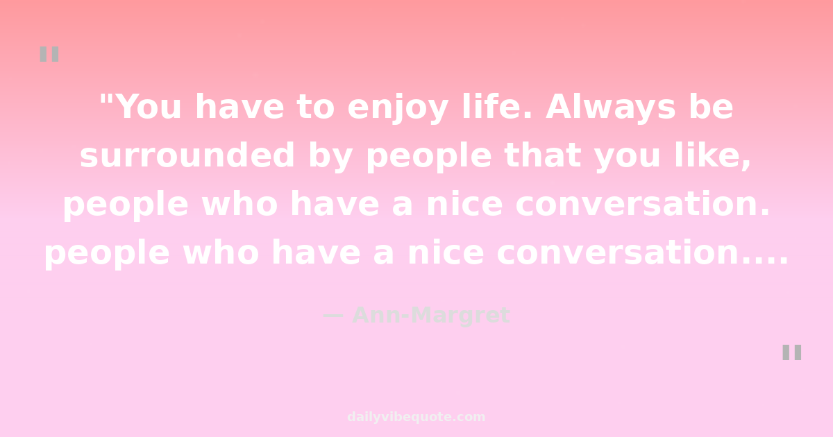 "You have to enjoy life. Always be surrounded by people that you like, people who have a nice conversation. There are so ..."