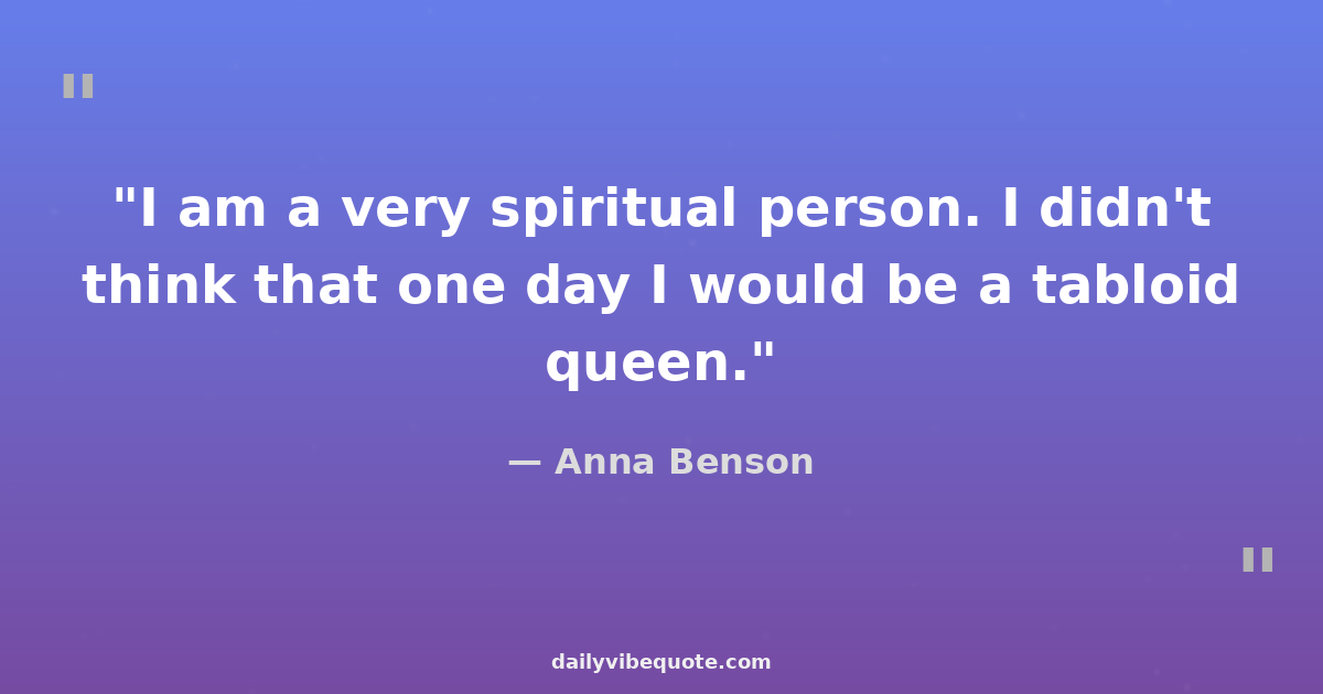 "I am a very spiritual person. I didn't think that one day I would be a tabloid queen."