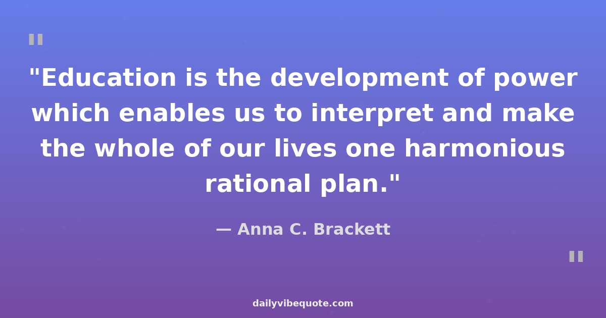 "Education is the development of power which enables us to interpret and make the whole of our lives one harmonious rational plan."