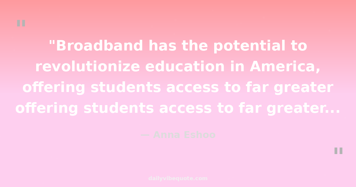 "Broadband has the potential to revolutionize education in America, offering students access to far greater resources and opportunities than ever before."