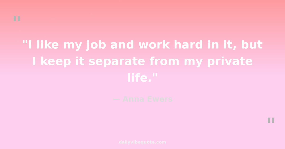 "I like my job and work hard in it, but I keep it separate from my private life."