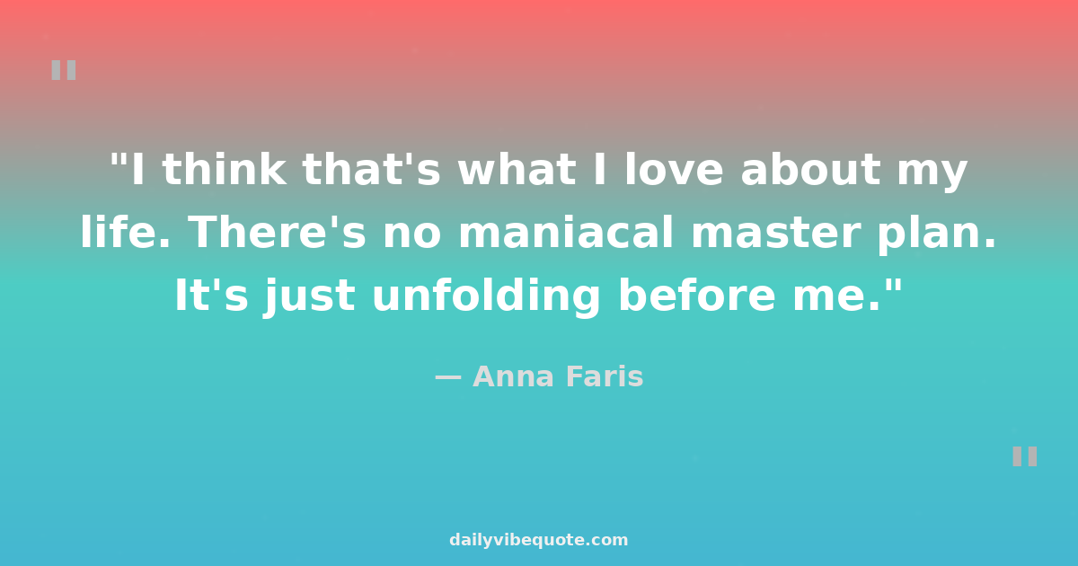 "I think that's what I love about my life. There's no maniacal master plan. It's just unfolding before me."