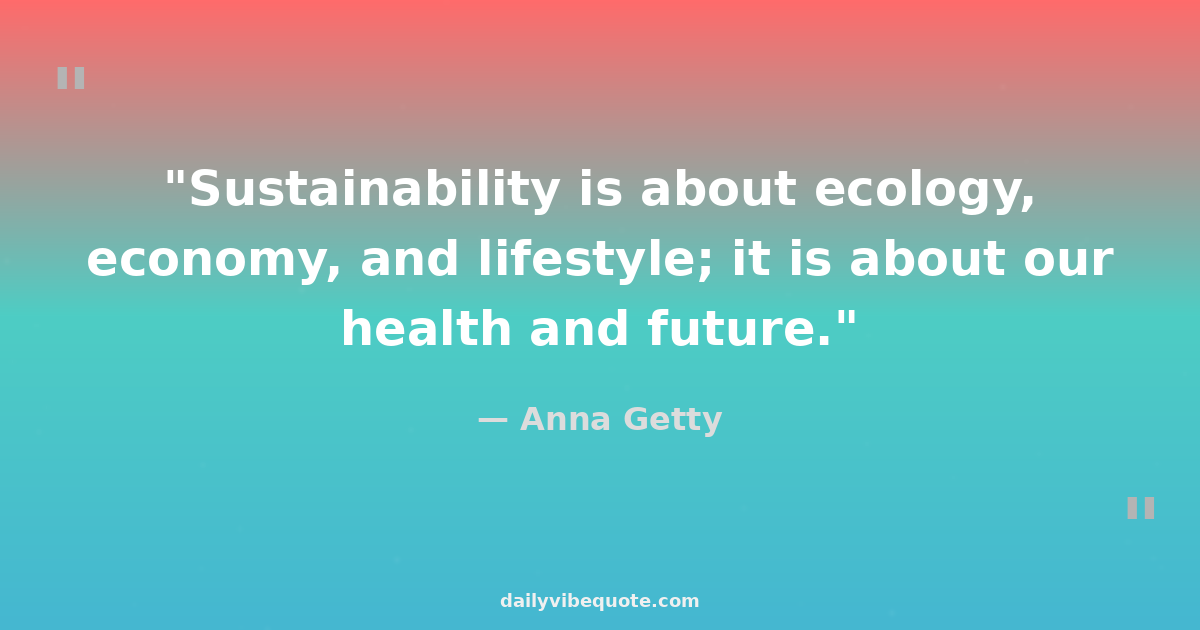"Sustainability is about ecology, economy, and lifestyle; it is about our health and future."