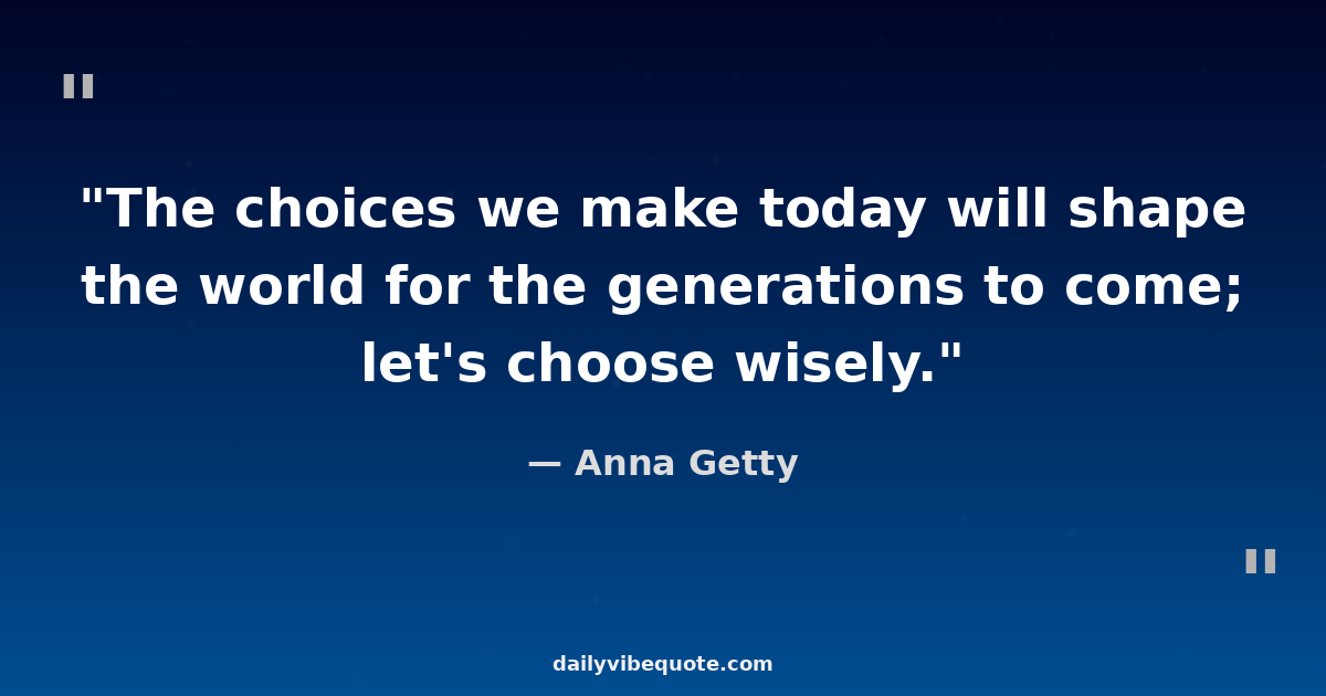"The choices we make today will shape the world for the generations to come; let's choose wisely."
