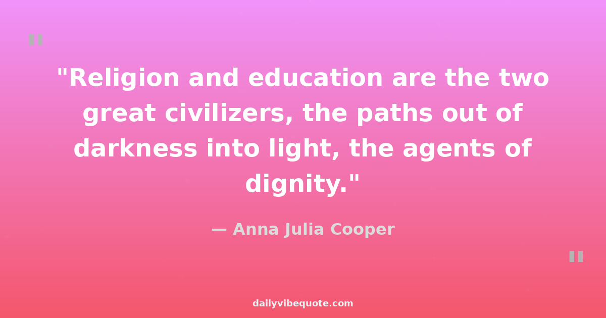 "Religion and education are the two great civilizers, the paths out of darkness into light, the agents of dignity."