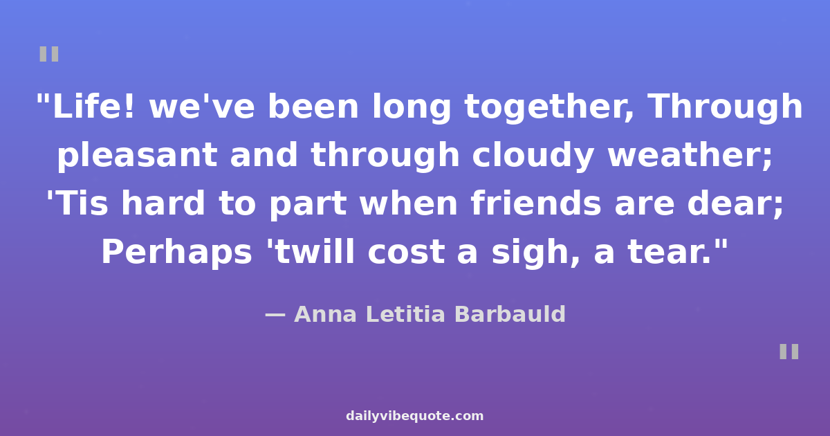 "Life! we've been long together, Through pleasant and through cloudy weather; 'Tis hard to part when friends are dear; Perhaps 'twill cost a sigh, a tear."