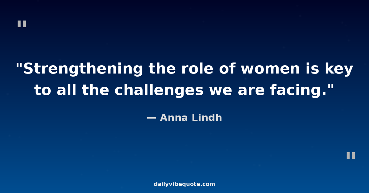 Anna Lindh was a Swedish politician who served as Minister for Foreign Affairs of Sweden from 1998 until her tragic death in 2003. She was a prominent member of the Swedish Social Democratic Party and known for her work on human rights and international relations. Lindh was a respected figure in Swedish politics and a strong advocate for women's rights and global cooperation.
