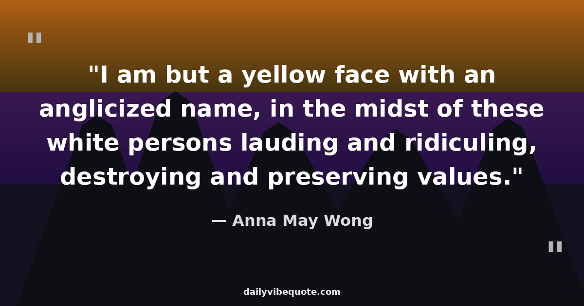 "I am but a yellow face with an anglicized name, in the midst of these white persons lauding and ridiculing, destroying and preserving values."