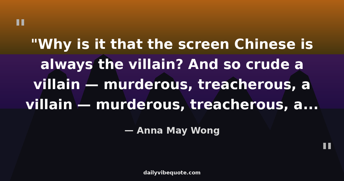"Why is it that the screen Chinese is always the villain? And so crude a villain — murderous, treacherous, a snake in the grass! We are not like that."