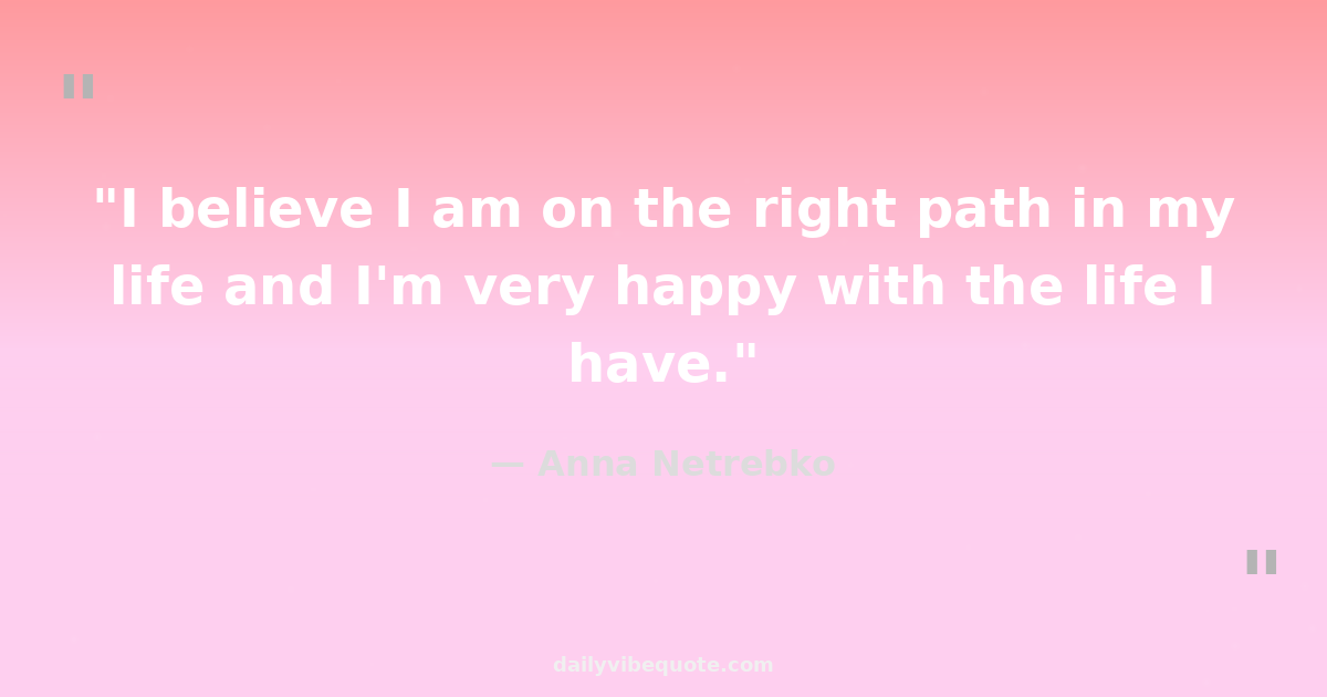 "I believe I am on the right path in my life and I'm very happy with the life I have."