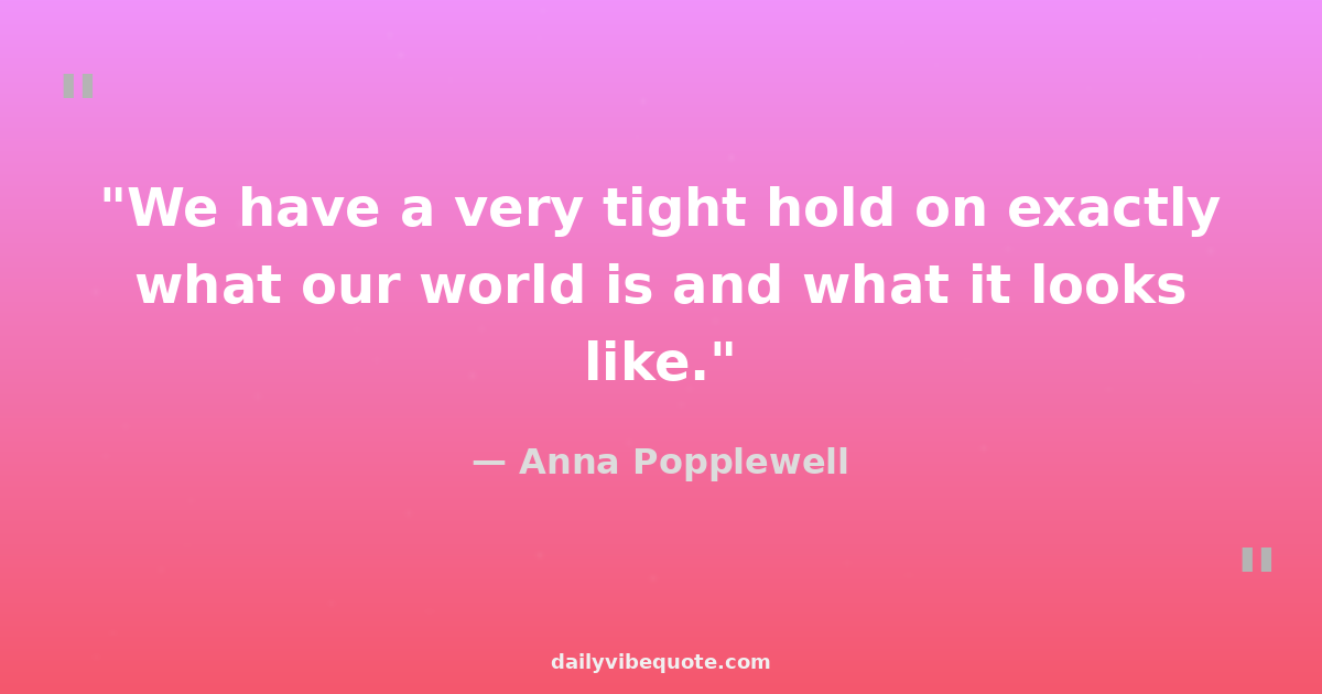 "We have a very tight hold on exactly what our world is and what it looks like."