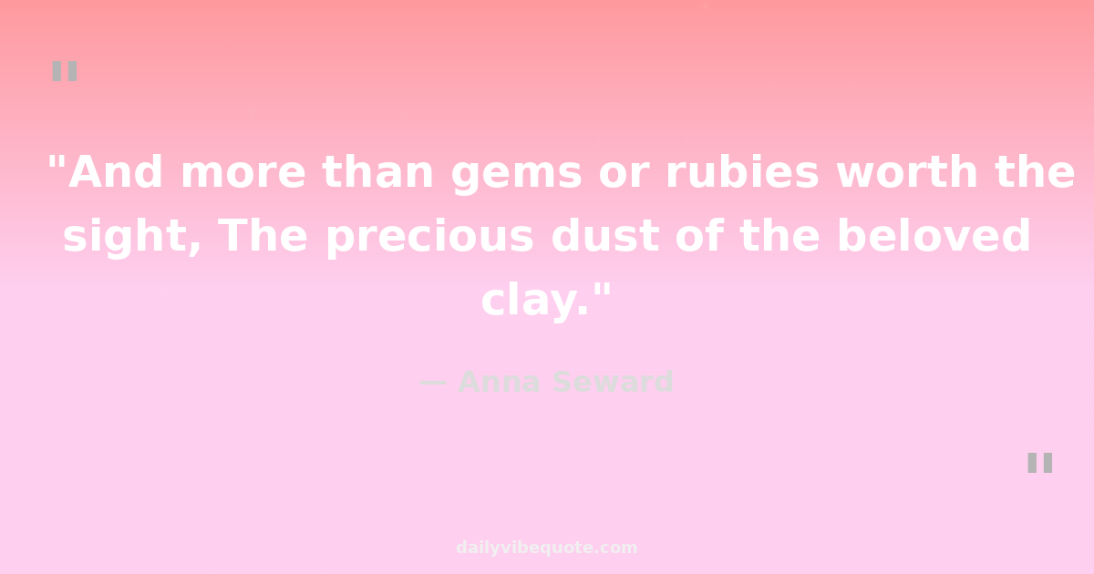 "And more than gems or rubies worth the sight, The precious dust of the beloved clay."