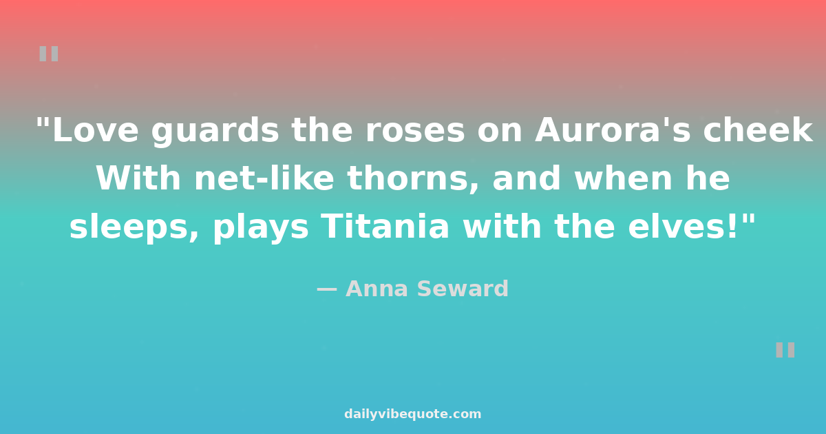 "Love guards the roses on Aurora's cheek With net-like thorns, and when he sleeps, plays Titania with the elves!"
