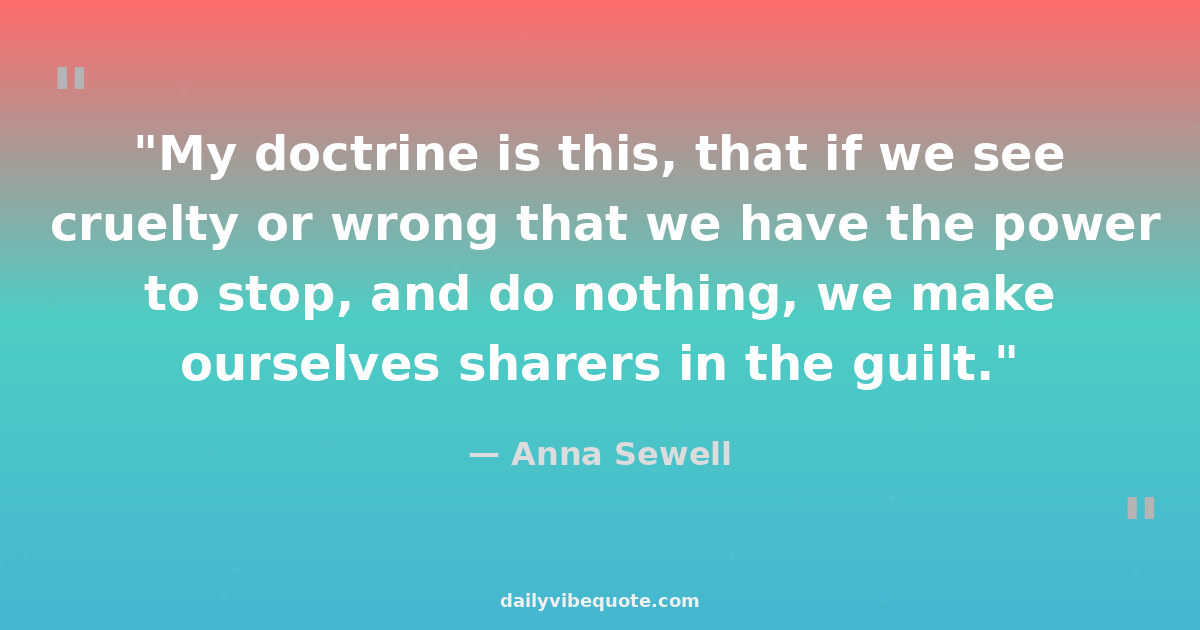 "My doctrine is this, that if we see cruelty or wrong that we have the power to stop, and do nothing, we make ourselves sharers in the guilt."