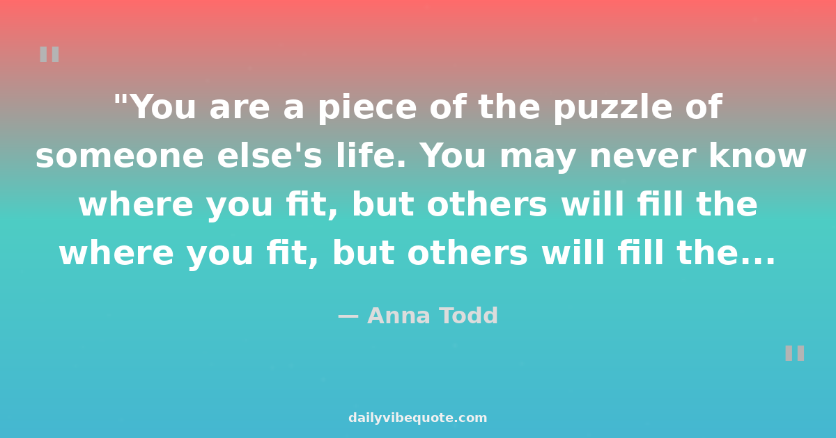 "You are a piece of the puzzle of someone else's life. You may never know where you fit, but others will fill the holes in their lives with pieces of you."