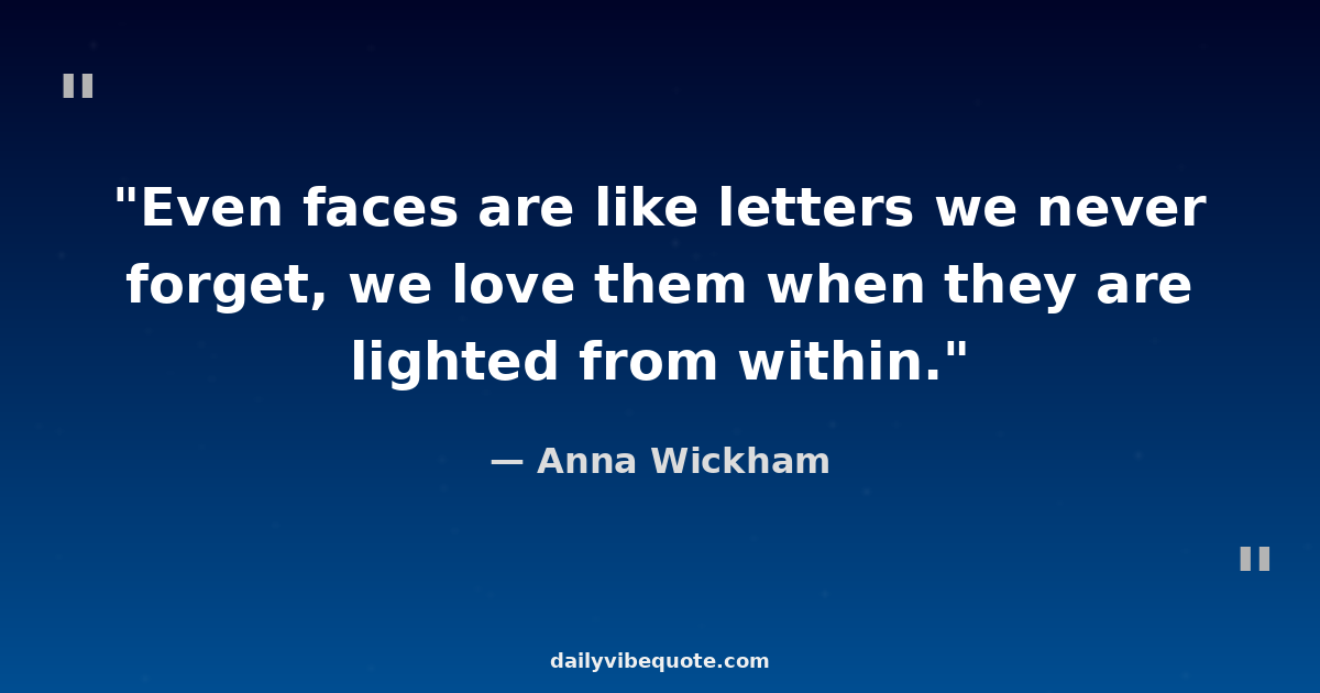 "Even faces are like letters we never forget, we love them when they are lighted from within."