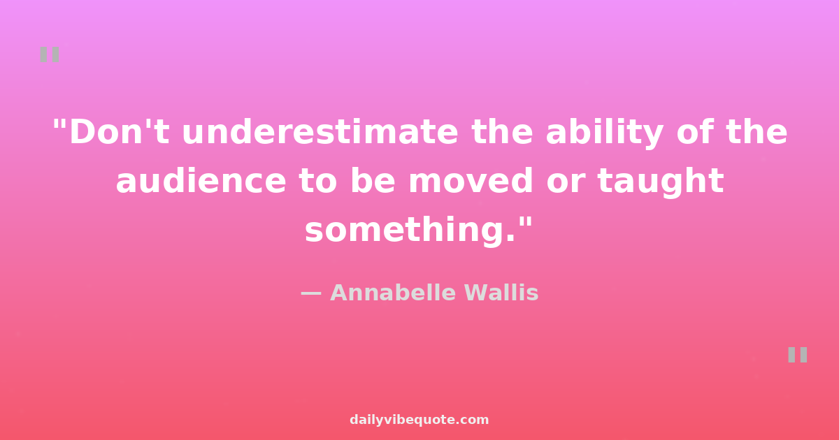 "Don't underestimate the ability of the audience to be moved or taught something."
