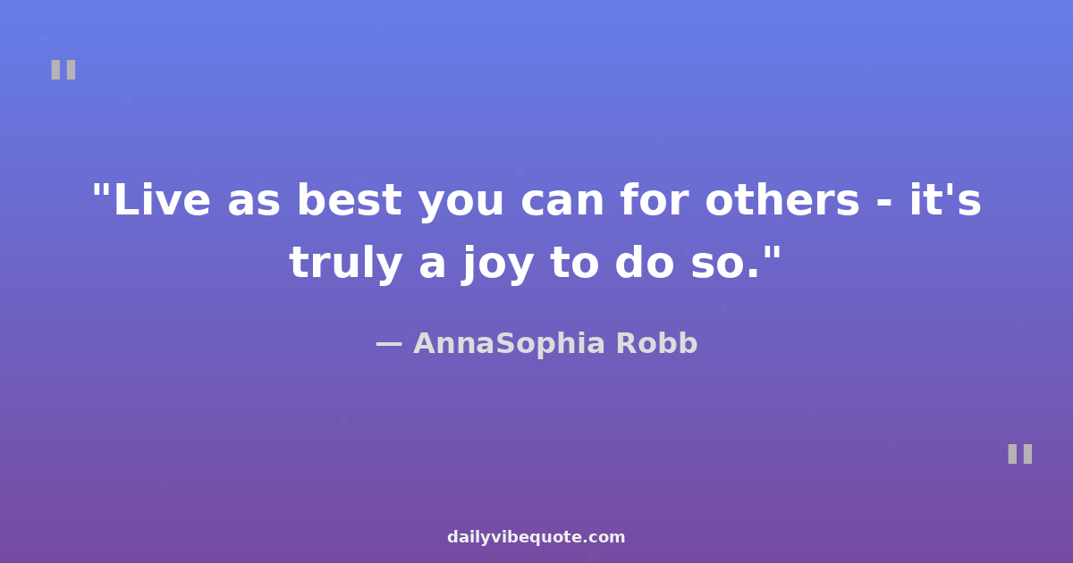 "Live as best you can for others - it's truly a joy to do so."