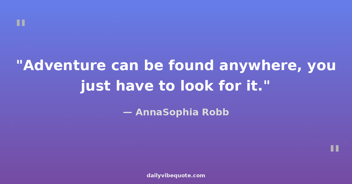 "Adventure can be found anywhere, you just have to look for it."