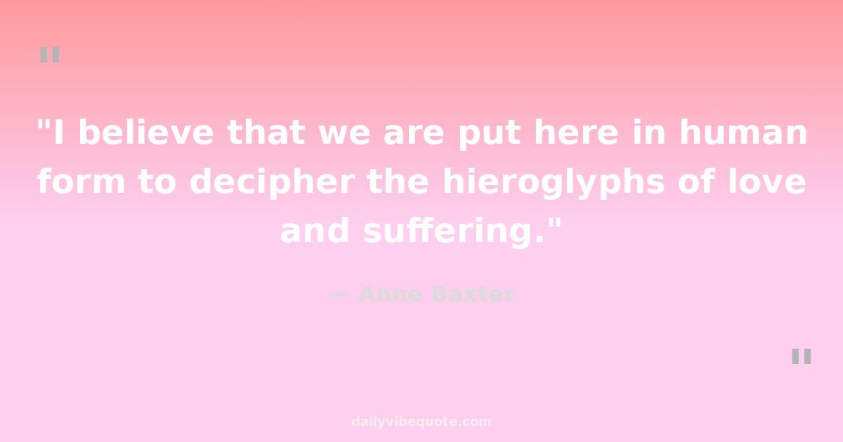 "I believe that we are put here in human form to decipher the hieroglyphs of love and suffering."