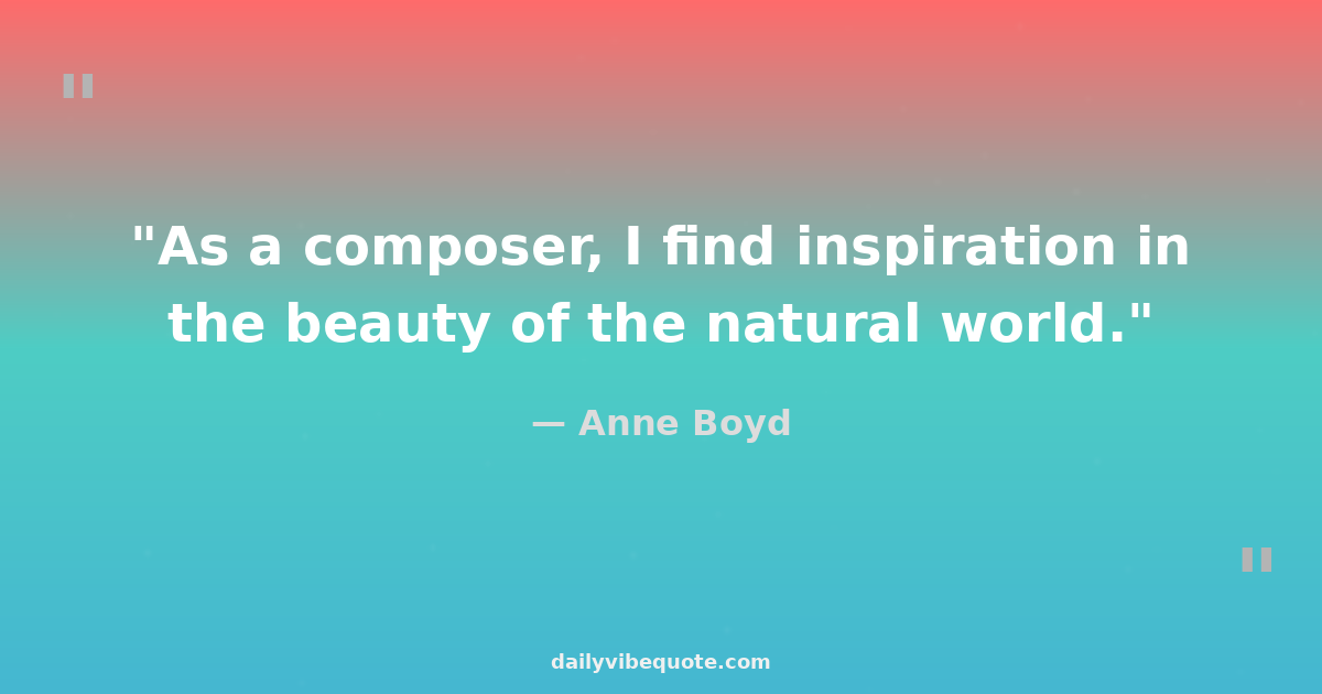 Anne Boyd is an Australian composer born in 1946. She is known for her contributions to contemporary classical music, particularly in the field of music composition. Boyd has achieved international recognition for her innovative works which often draw on themes from indigenous Australian culture. Her compositions have been performed worldwide, and she has received numerous awards and accolades for her artistic achievements.