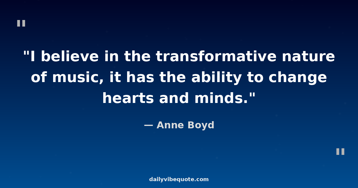 Anne Boyd is an Australian composer born in 1946. She is known for her contributions to contemporary classical music, particularly in the field of music composition. Boyd has achieved international recognition for her innovative works which often draw on themes from indigenous Australian culture. Her compositions have been performed worldwide, and she has received numerous awards and accolades for her artistic achievements.