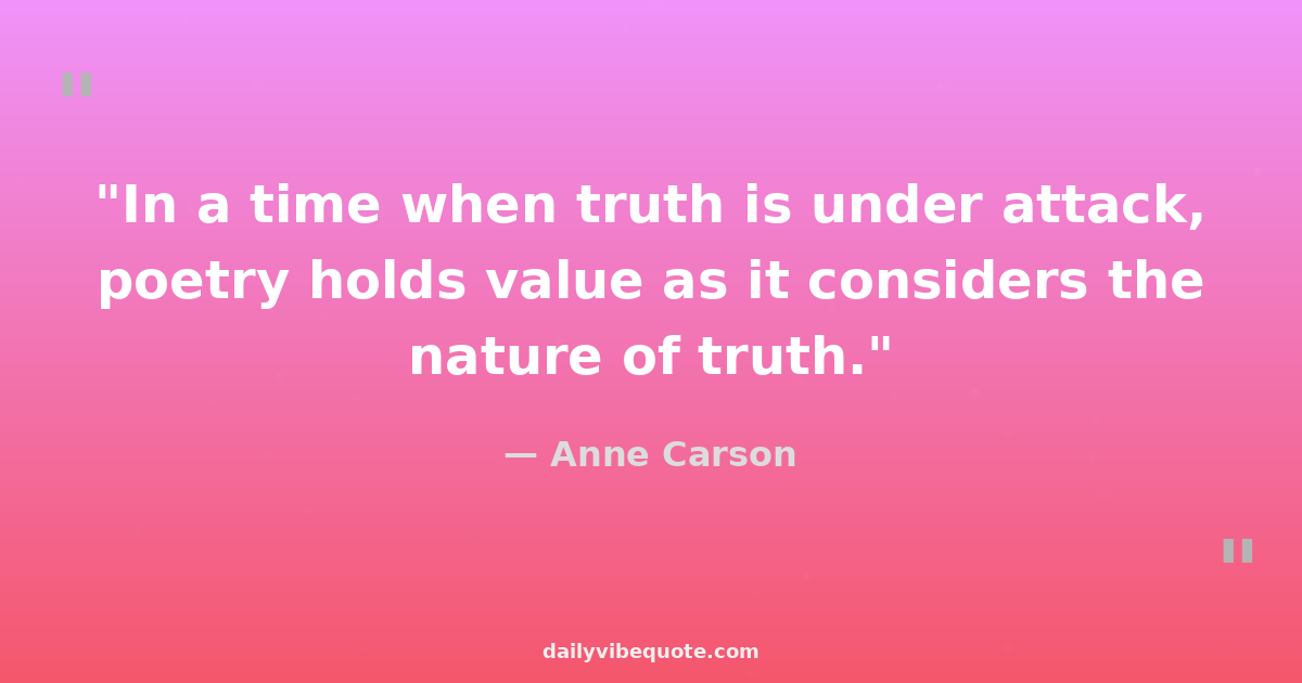 Anne Carson is a Canadian poet, essayist, and translator known for her innovative and boundary-breaking work in literature. She has published numerous award-winning books that blend genres and challenge traditional narrative forms. Carson's writing often explores themes of love, loss, and identity with a poetic and philosophical perspective. With a background in classics, she has translated works by ancient Greek writers as well. Carson is recognized for her unique style and intellectual depth, earning her critical acclaim and a dedicated readership worldwide.