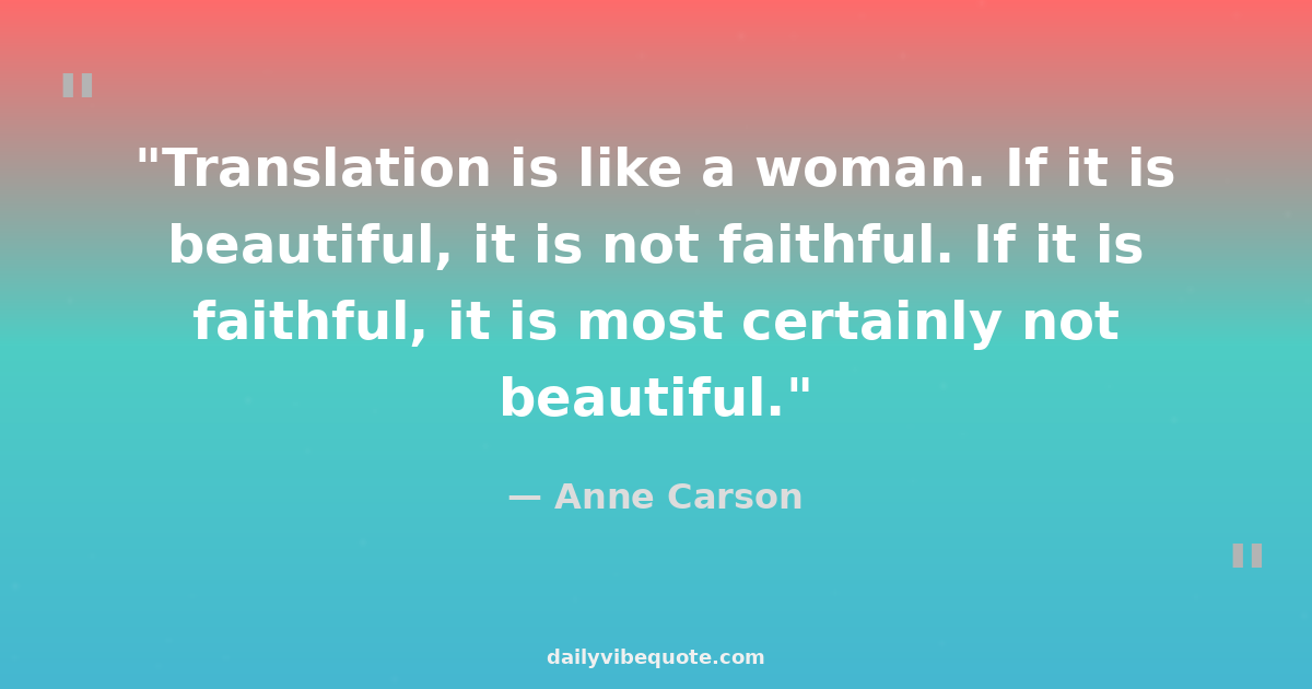 "Translation is like a woman. If it is beautiful, it is not faithful. If it is faithful, it is most certainly not beautiful."