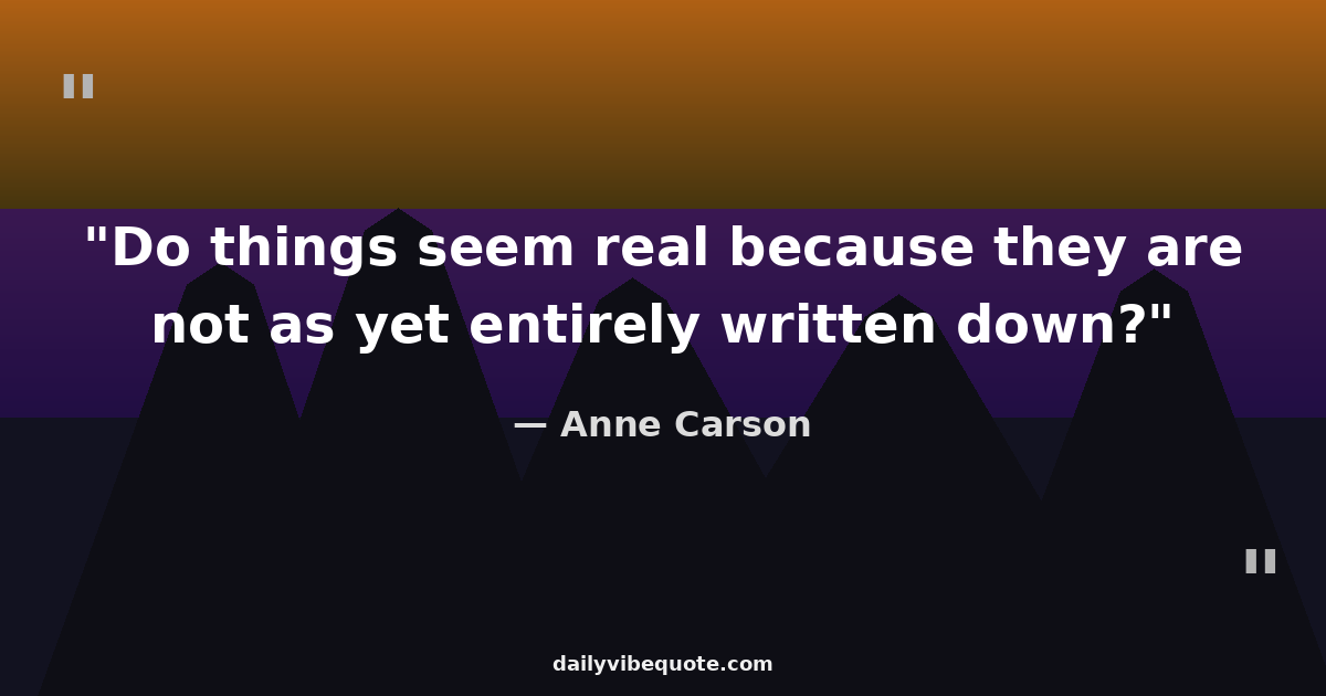 Anne Carson is a Canadian poet, essayist, and translator known for her innovative and boundary-breaking work in literature. She has published numerous award-winning books that blend genres and challenge traditional narrative forms. Carson's writing often explores themes of love, loss, and identity with a poetic and philosophical perspective. With a background in classics, she has translated works by ancient Greek writers as well. Carson is recognized for her unique style and intellectual depth, earning her critical acclaim and a dedicated readership worldwide.