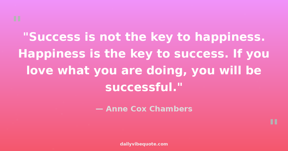 "Success is not the key to happiness. Happiness is the key to success. If you love what you are doing, you will be successful."