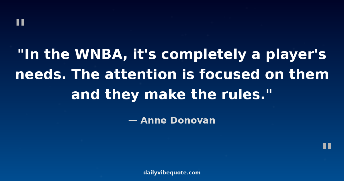 "In the WNBA, it's completely a player's needs. The attention is focused on them and they make the rules."