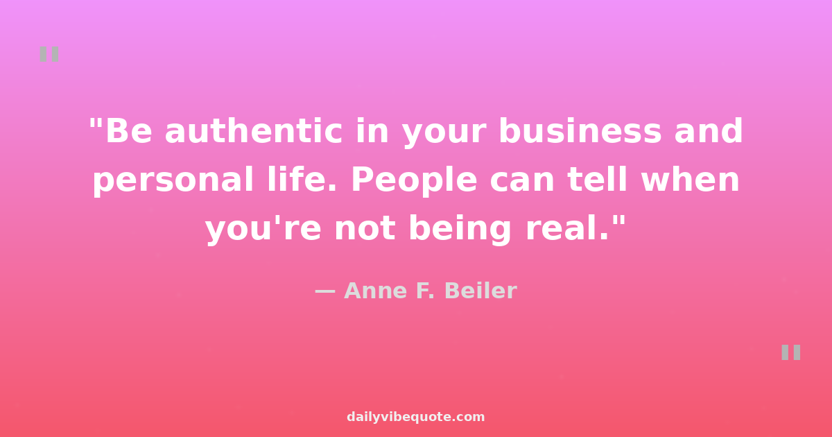 "Be authentic in your business and personal life. People can tell when you're not being real."